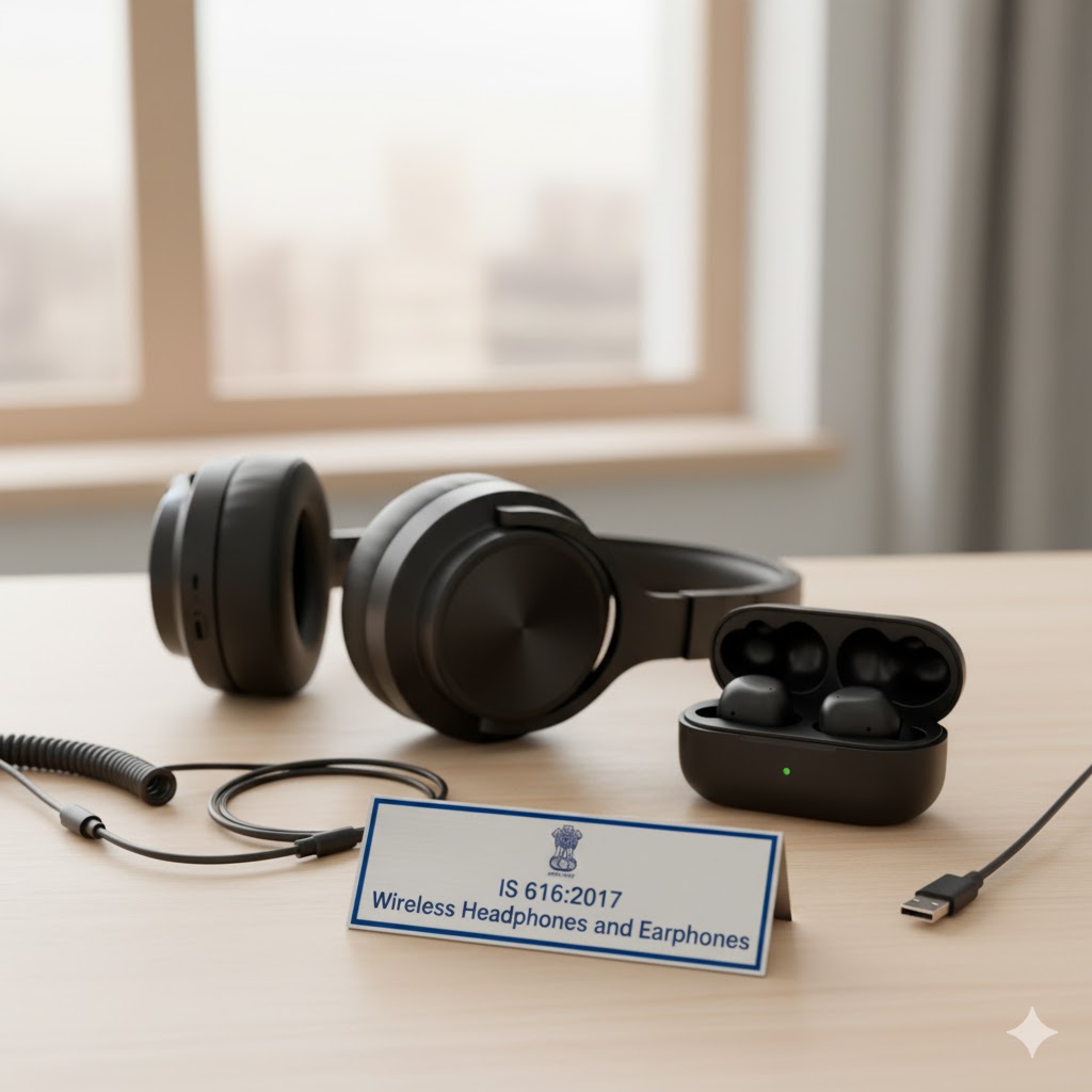 Since 1st June 2016, Wireless Headphones and Earphones have been subject to BIS CRS certification under IS 616:2017. This ensures electrical safety, standardized quality, and reliable performance for wireless personal audio devices in India.